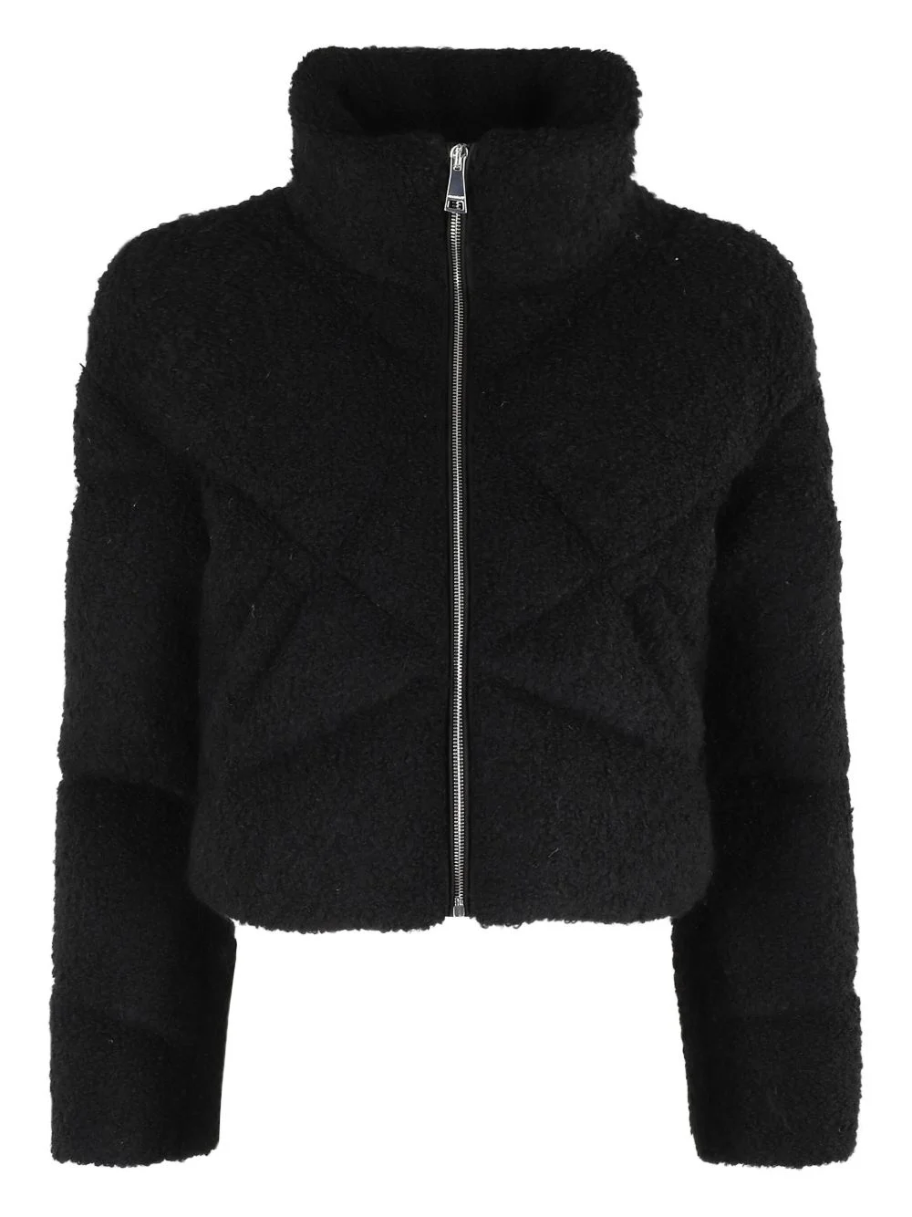 boucle bomber jacket Highlights - Black - Boucle effect - High-neck - Front zip fastening - Long sleeves - Side slit pockets Made in Italy Composition Outer: Polyacrylic 41%, Polyester 21%, Cotton 19%, Virgin Wool 18%, Other fibres 1% Lining: Polyester 100% Washing instructions Read Manufacturer Guidelines