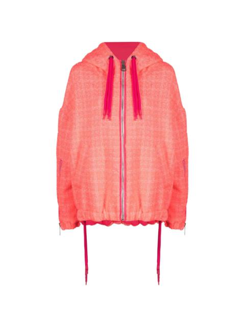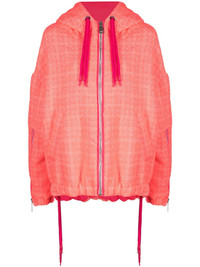 tweed drawstring hood jacket The baggy silhouette of this flamingo pink-hued jacket from Khrisjoy is elevated with a tweed shell for added texture. Boasting multiple drawstrings at the hood and hem, this Italy-made piece taps into the brand's bold approach to outerwear. Highlights - Flamingo pink - Tweed - Front zip fastening - Drawstring hood - Two side slit pockets - Cuff zips - Drawstring hem Made in Italy Composition Lining: Polyester 100% Outer: Polyester 100% SIZE & FIT Model measurements Height 5 ft 10 in(1.77 m) Bust/Chest 32.67 in(83 cm) Hips 35.43 in(90 cm) Waist 23.62 in(60 cm) FittingInformation Designed to be unstructured, offering a loose fit throughout The internal drawstring at the hem allows for fitted preferences Made from a midweight non-stretch fabric, this piece offers minimal elasticity when worn This piece fits true to size – take your usual size Washing instructions Hand Wash
