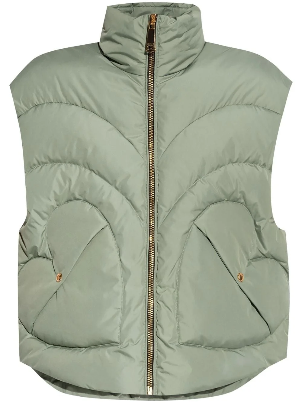 high-neck vest jacket Highlights - Green - Quilted - Zip fastening - High neck - Two front button-fastening jetted pockets - Sleeveless - Curved hem Made in Italy Composition Outer: Polyester 100% Lining: Polyester 100%, Down 80%, Feather 20%