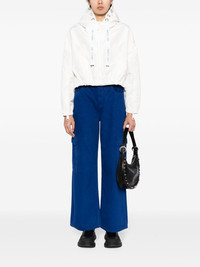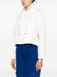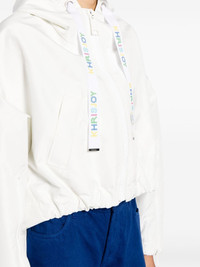 hooded cropped windbreaker Highlights - Off-white - Metal eyelet detailing - Logo-print drawstring - Drawstring hood - Front zip fastening - Drop shoulder - Long sleeves - Cuff zips - Two side welt pockets - Drawstring hem Made in Italy Composition Outer: Polyester 100% SIZE & FIT Model measurements Height 5 ft 10 in(1.77 m) Bust/Chest 31.49 in(80 cm) Hips 35.43 in(90 cm) Waist 25.19 in(64 cm) FittingInformation Designed to be unstructured, offering a loose fit throughout The internal drawstring at the hem allows for fitted preferences Made from a midweight non-stretch fabric This piece fits true to size – take your usual size Washing instructions Hand Wash