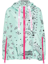 Khris bandana-print jacket Highlights - Mint green/multicolour - All-over bandana print - Logo-embroidered drawstring - Drawstring hood - Long sleeves - Cuff zips - Elasticated cuffs - Two side slit pockets - High-low drawstring hem - Front zip fastening Made in Italy Composition Polyester 100% SIZE & FIT Model measurements Height 5 ft 11 in(1.8 m) Bust/Chest 33.07 in(84 cm) Hips 37.4 in(95 cm) Waist 25.19 in(64 cm) FittingInformation Designed to be unstructured, offering a loose fit throughout The internal drawstring at the hem allows for fitted preferences Made from a midweight non-stretch fabric This piece fits true to size – take your usual size Washing instructions Hand Wash