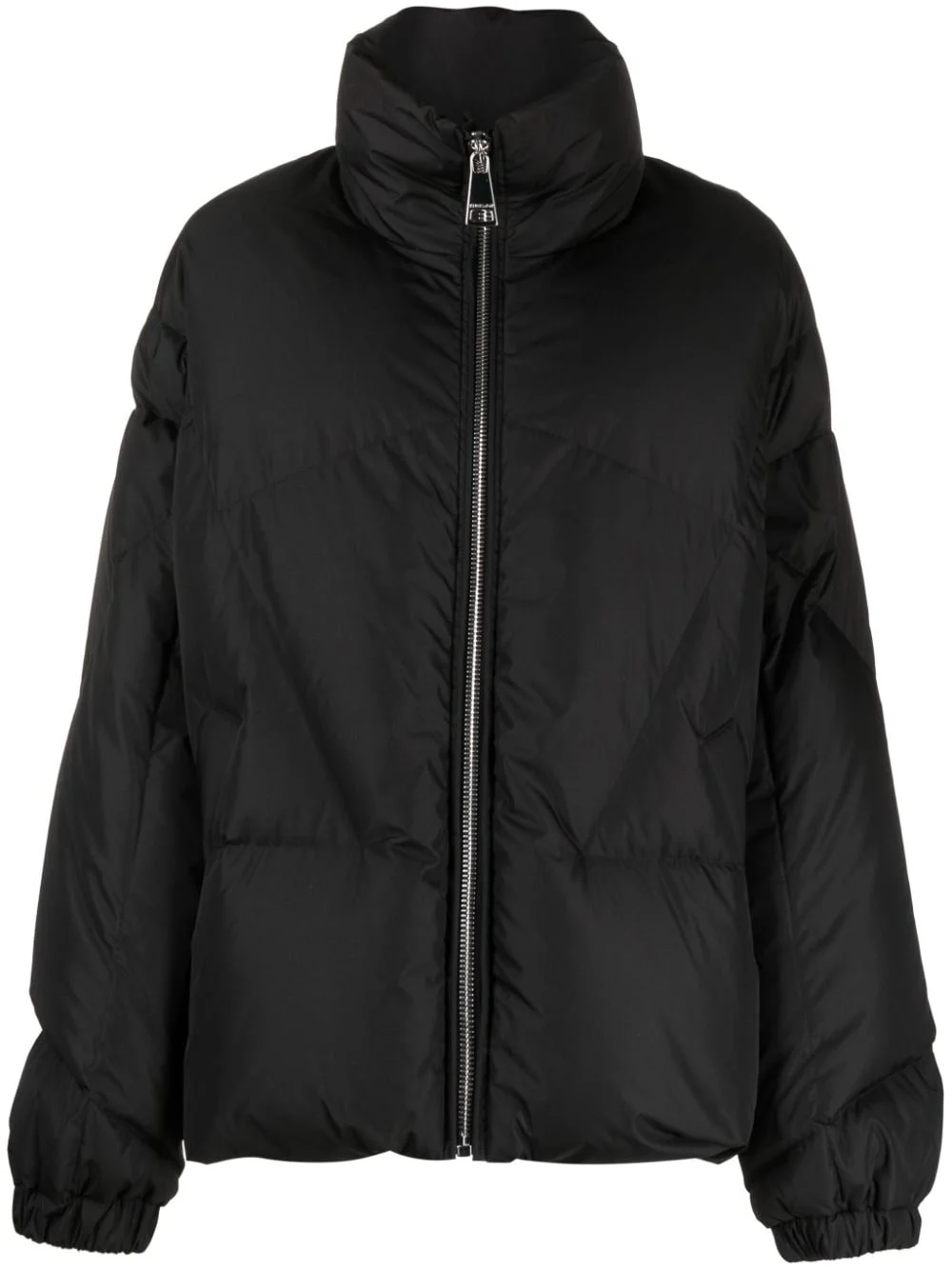 Moon quilted puffer jacket Highlights - Black - Down-feather filling - Padded design - Quilted - Logo patch to the rear - Funnel neck - Front zip fastening - Drop shoulder - Long sleeves - Elasticated cuffs - Two diagonal pockets to the sides - High-low hem Made in Italy Composition Outer: Polyester 100% Lining: Polyester 100%, Feather Down 100%, Polyamide 38%, Wool 29%, Viscose 28%, Cashmere 5% SIZE & FIT Model measurements Height 5 ft 10 in(1.77 m) Bust/Chest 31.88 in(81 cm) Hips 36.22 in(92 cm) Waist 24.01 in(61 cm) FittingInformation Designed to be unstructured, offering a loose fit throughout The internal drawstring at the hem allows for fitted preferences Made from a padded non-stretch fabric, giving it no natural elasticity This piece fits true to size – take your usual size Washing instructions Hand Wash