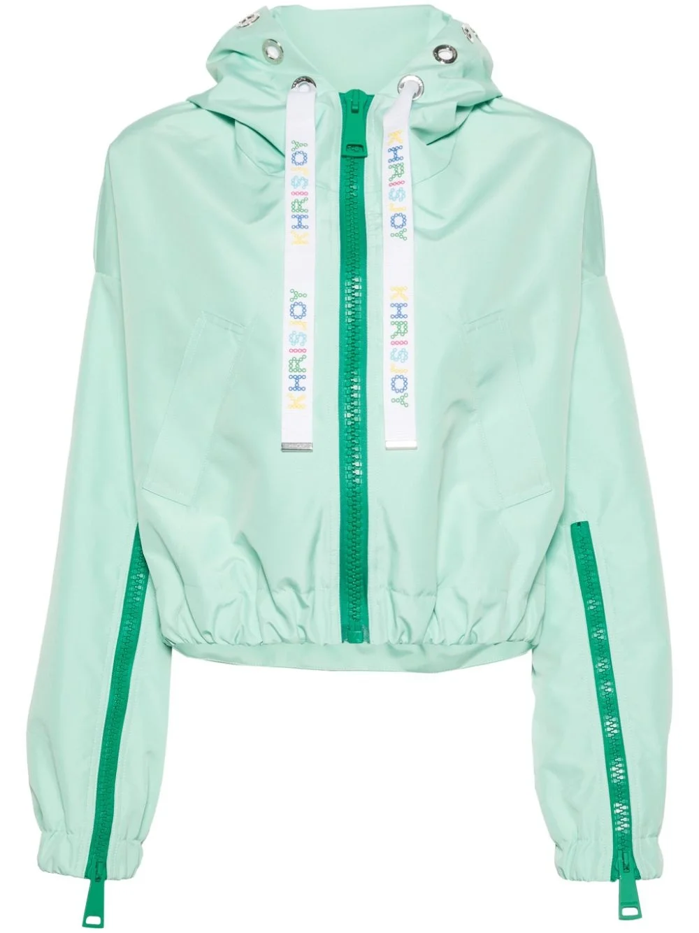 New Khris cropped windbreaker Highlights - Mint green - Taffeta - Metal eyelet detailing - Drawstring hood - Drop shoulder - Long sleeves - Elasticated cuffs - Two front welt pockets - Internal drawstring fastening waist - Cropped - Unlined - Front zip fastening Made in Italy Composition Polyester 100% SIZE & FIT Model measurements Height 5 ft 11 in(1.8 m) Bust/Chest 33.07 in(84 cm) Hips 37.4 in(95 cm) Waist 25.19 in(64 cm) FittingInformation Designed to be unstructured, offering a loose fit throughout Cropped in length Made from a midweight non-stretch fabric This piece fits true to size – take your usual size