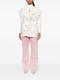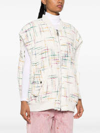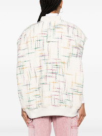 oversized tweed bomber jacket Highlights - Milk white/multicolour - Wool-cotton blend - Tweed - Embroidered logo to the rear - Band collar - Front zip fastening - Sleeveless - Two side flap pockets - Ribbed hem Made in Italy Composition Outer: Wool 43%, Polyester 21%, Acrylic 16%, Viscose 12%, Cotton 7%, Polyamide 1% Lining: Polyester 100% SIZE & FIT Model measurements Height 5 ft 10 in(1.78 m) Bust/Chest 32.67 in(83 cm) Hips 35.43 in(90 cm) Waist 23.22 in(59 cm) FittingInformation Designed for an oversized fit, offering additional room throughout The ribbed hem offers a close, comfortable fit Made from a padded non-stretch fabric, giving it no natural elasticity This piece fits true to size – take your usual size Washing instructions Dry Clean Only