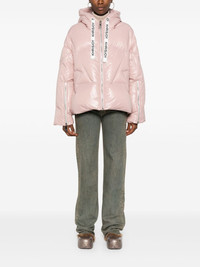 Khris shiny puffer jacket Highlights - Light pink - Down-feather filling - Padded design - Quilted - Glossy finish - Front zip fastening - Slouchy drawstring hood - Long sleeves - Cuff zips - Two side welt pockets - Full lining - Drawstring hem Made in Italy Composition Outer: Polyamide 100% Lining: Polyester 100%, Duck Down 90%, Duck Feathers 10% SIZE & FIT Model measurements Height 5 ft 10 in(1.78 m) Bust/Chest 31.49 in(80 cm) Hips 37 in(94 cm) Waist 23.62 in(60 cm) FittingInformation Designed to be unstructured, offering a loose fit throughout The internal drawstring at the hem allows for fitted preferences Made from a padded non-stretch fabric, giving it no natural elasticity