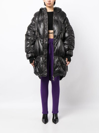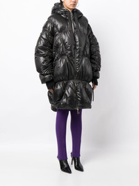 Puff Khris Cloud coat Highlights - Black - Duck down - Padded design - Drawstring hood - Front two-way zip fastening - Long sleeves - Ribbed cuffs - Thumb slots - Two side flap pockets - Straight hem - Above-knee length Made in Italy Composition Outer: Polyester 100% Lining: Polyester 100% Filling: Duck Down 80%, Duck Feathers 20% SIZE & FIT Model measurements Height 5 ft 10 in(1.77 m) Bust/Chest 31.49 in(80 cm) Hips 35.43 in(90 cm) Waist 25.19 in(64 cm) FittingInformation Designed for an oversized fit, offering additional room throughout Constructed with additional length on the sleeve Made from a padded non-stretch fabric, giving it no natural elasticity This piece fits large – take one size down. If you have petite frame you may wish to take a further size down
