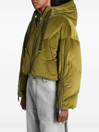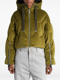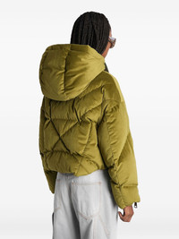 quilted attached-hood puffer jacket Highlights - Olive green - Quilted design - Hooded neckline - Zip fastening - Logo drawstring - Long sleeves Made in United States Composition Fabric 100% Washing instructions Read Manufacturer Guidelines