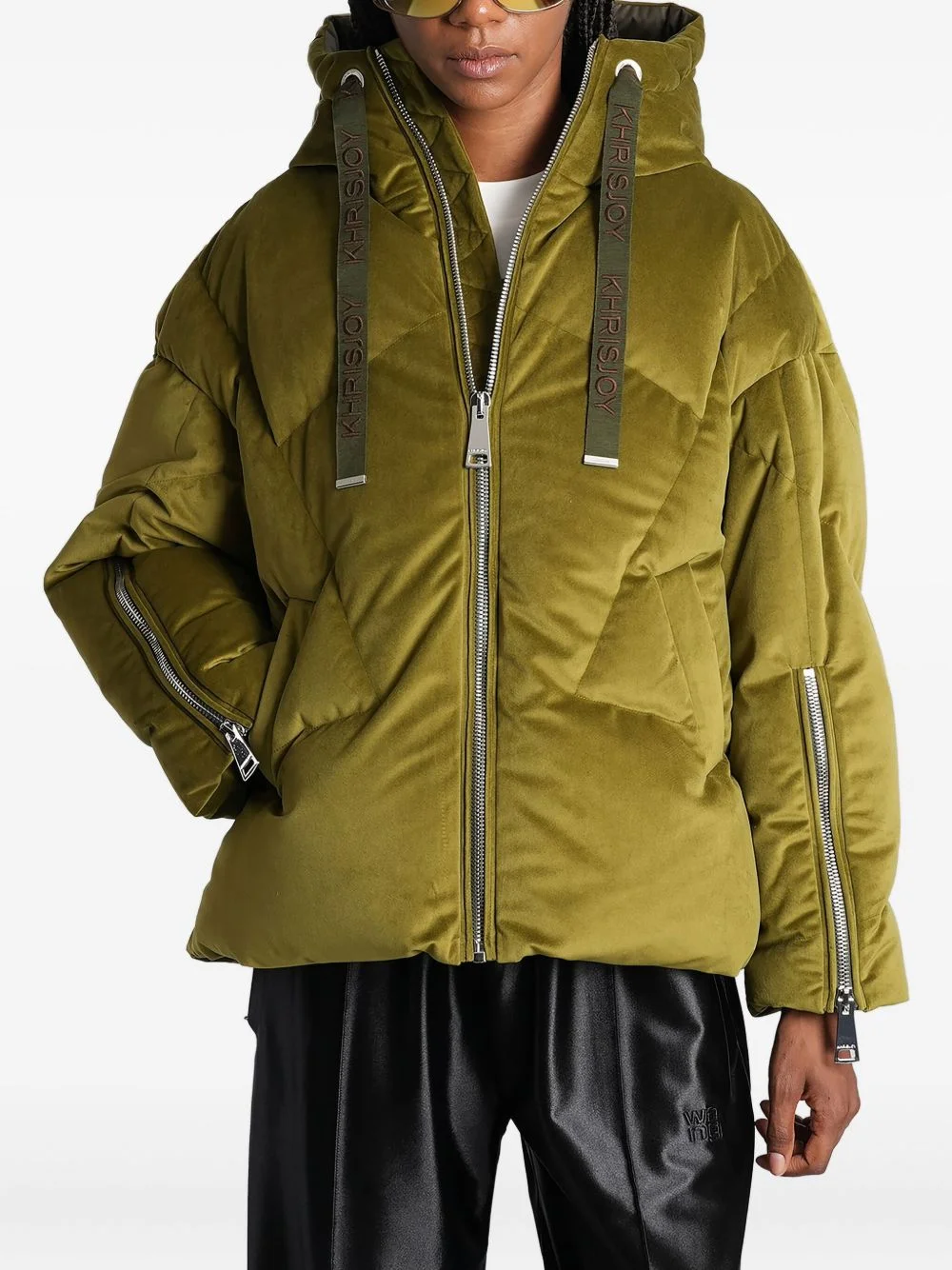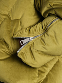 quilted velvet-effect puffer jacket Highlights Made in United States Composition Outer: Polyester 100% Lining: Polyester 100% Filling: Down 90%, Feather 10%