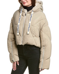 - Color/pattern: nude - Approximately 20-22in from shoulder to hem - Model is 5'10.5 and is wearing a size 1. Measurements may vary slightly by size. - Design details: hooded back, two front pockets, zippered sleeves - Zipper closure - Self: 100% polyester - Fill: 80% down, 20% feathers - Hand wash - Made in Italy