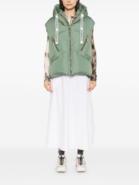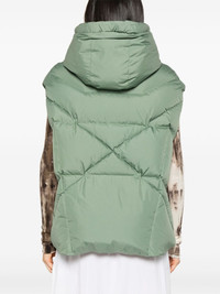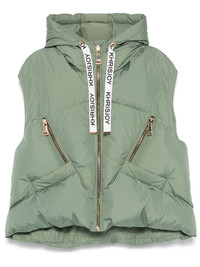 Khris Iconic gilet Highlights - Sage green - Front zip fastening - Two side zip-fastening pockets - Drawstring hood - Quilted Made in Italy Composition Lining: Polyester 100%, Down 90%, Feather 10% Outer: Polyester 100% SIZE & FIT Model measurements Height 5 ft 11 in(1.8 m) Bust/Chest 33.07 in(84 cm) Hips 37.4 in(95 cm) Waist 25.19 in(64 cm) FittingInformation Designed to be unstructured, offering a loose fit throughout The internal drawstring at the hem allows for fitted preferences Made from a padded non-stretch fabric, giving it no natural elasticity