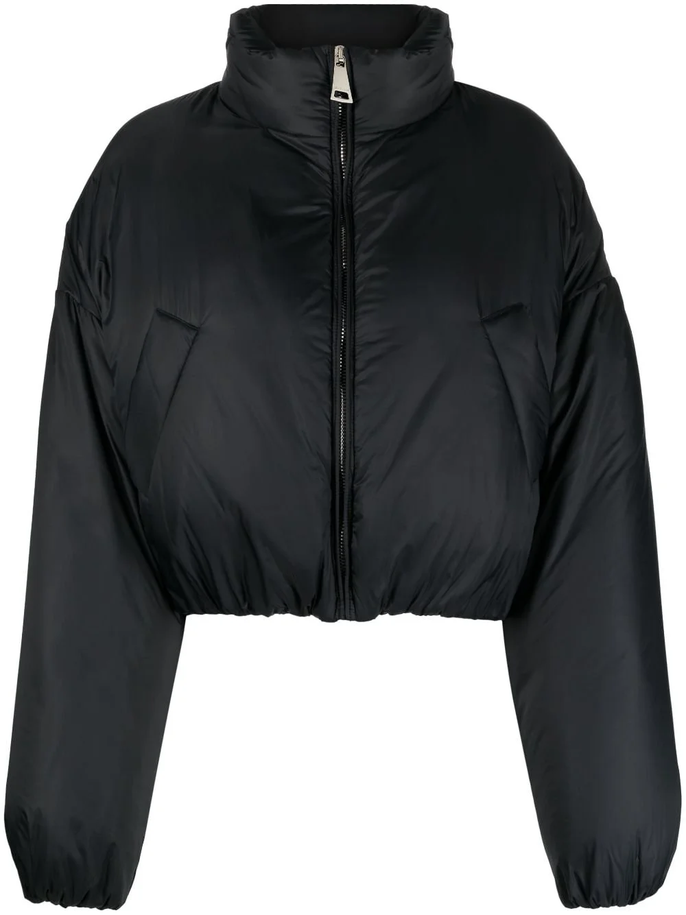 zipped cropped jacket Highlights - Black - Padded design - Front zip fastening - Two front welt pockets - High neck - Long sleeves - Cropped - Straight hem Made in Italy Composition Outer: Polyamide 100% Lining: Polyamide 100%, Polyester 100%, Down 80%, Feather 20% SIZE & FIT Model measurements Height 5 ft 11 in(1.8 m) Bust/Chest 33.07 in(84 cm) Hips 37 in(94 cm) Waist 25.59 in(65 cm) FittingInformation Designed for a slim fit that sits just away from the body offering a close yet comfortable fit The internal drawstring at the hem allows for fitted preferences Made from a padded non-stretch fabric, giving it no natural elasticity This piece fits true to size – take your usual size Washing instructions Hand Wash