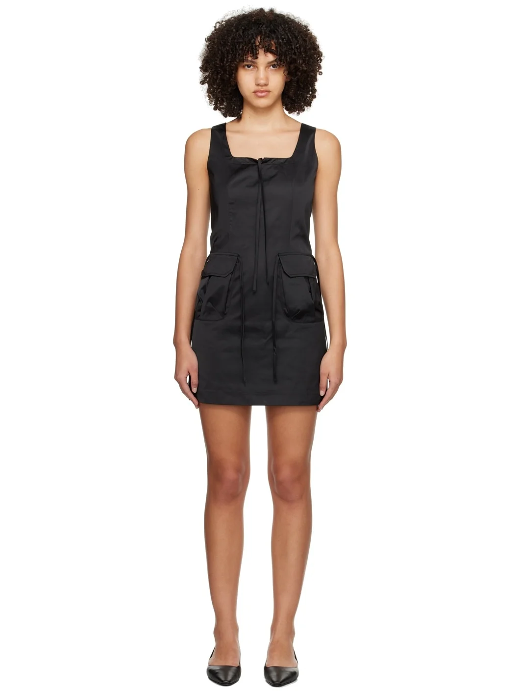 Polyester satin dress. Self-tie straps throughout. · Square neck · Darting at chest · Cargo pockets at front · Logo hardware at cargo pocket · Fixed shoulder straps · Concealed zip closure at back · Fully lined Supplier color: Black 100% polyester. Made in South Korea 241586F052002