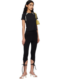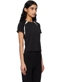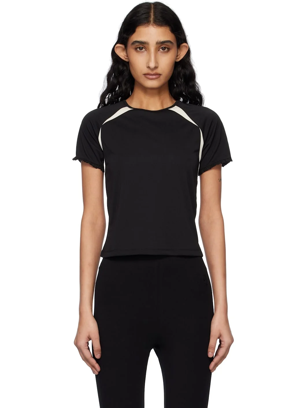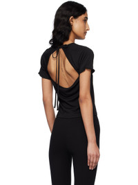 Polyester jersey T-shirt. · Crewneck · Mesh panel at front armscyes · Raglan sleeves · Ruffled trim at cuffs · Self-tie fastening at back collar · Open back Supplier color: Black 100% polyester. Made in South Korea 251586F110008