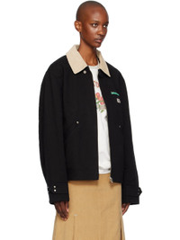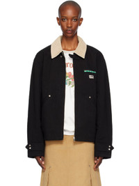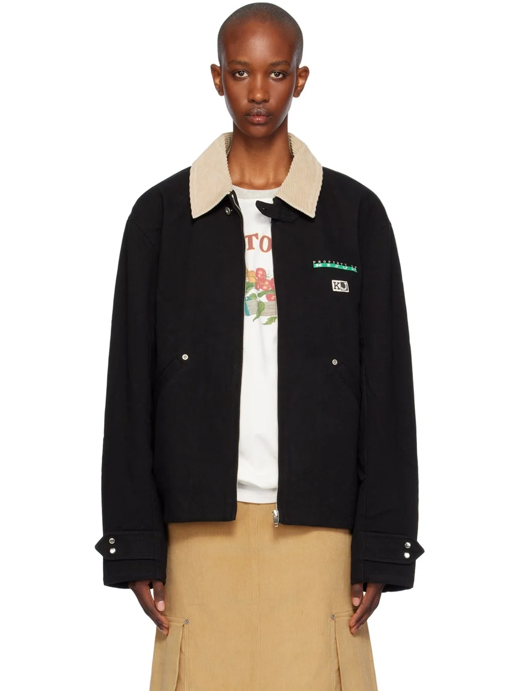 Lightweight and breathable insulated Sorona® cotton twill jacket. · Corduroy spread collar · Zip closure · Logo embroidered and logo patch at chest · Welt pockets · Adjustable press-stud tab at cuffs and back hem · Logo applique at back · Full flannel lining Supplier color: Black Body: 100% cotton. Lining: 100% polyester. Made in South Korea 242586F063001