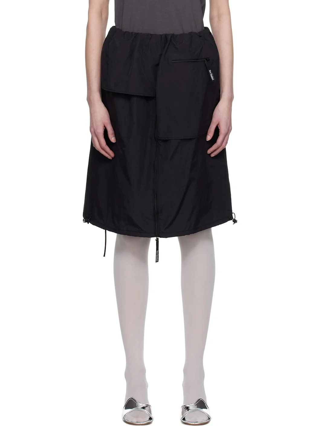 Nylon taffeta midi skirt. · Layered and asymmetrical construction · Elasticized waistband · Four-pocket styling · Zip closure at front · Bungee-style drawstring at hem · Full taffeta lining Supplier color: Black 100% nylon. Made in South Korea 251586F092003