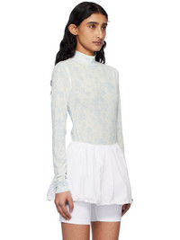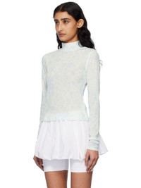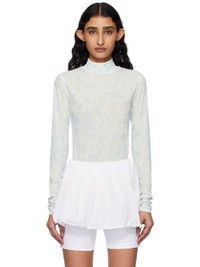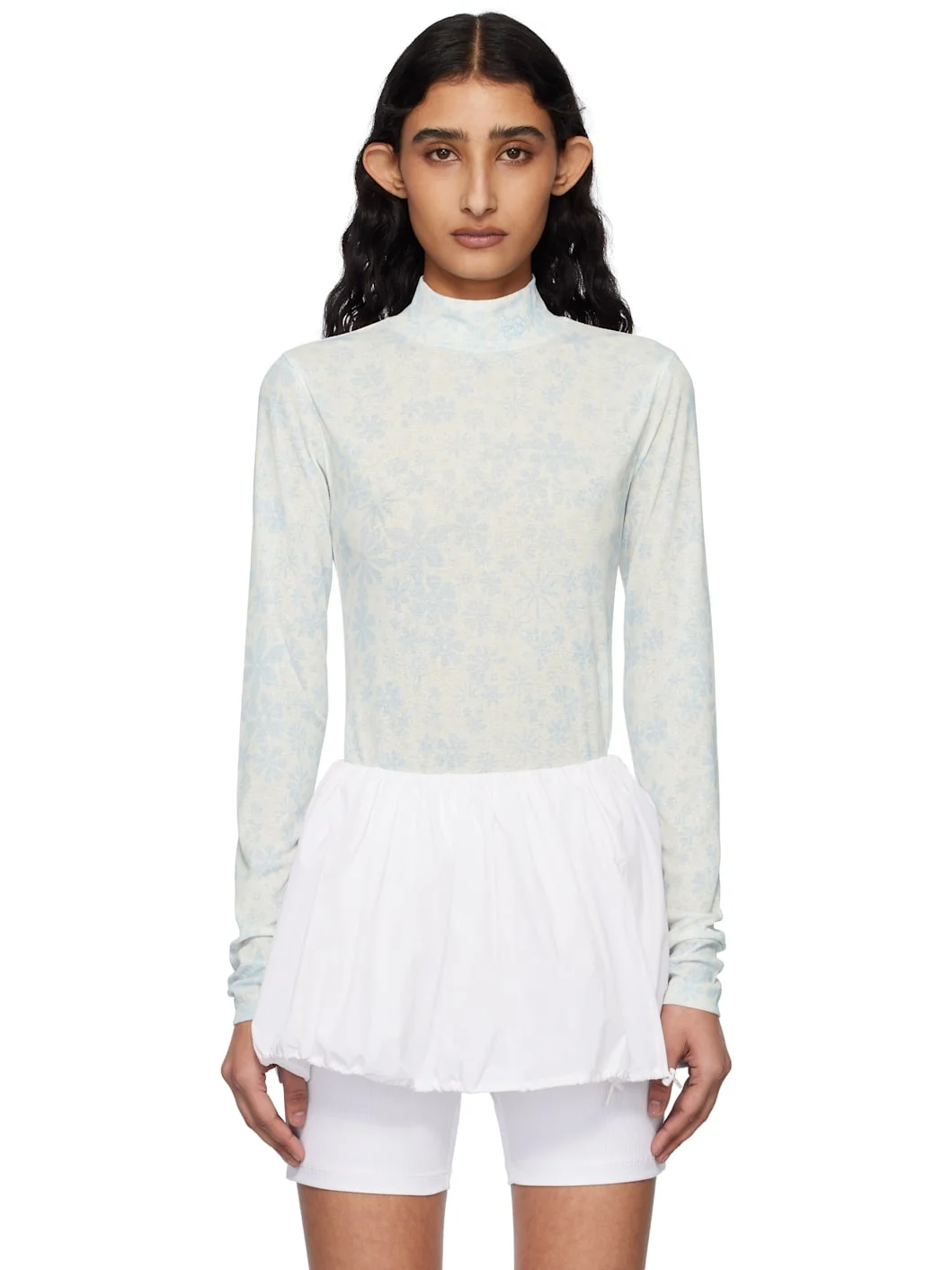 Semi-sheer polyester jersey turtleneck. · Floral pattern printed throughout · Logo embroidered at collar Supplier color: Print sky blue 100% polyester. Made in South Korea 251586F099000