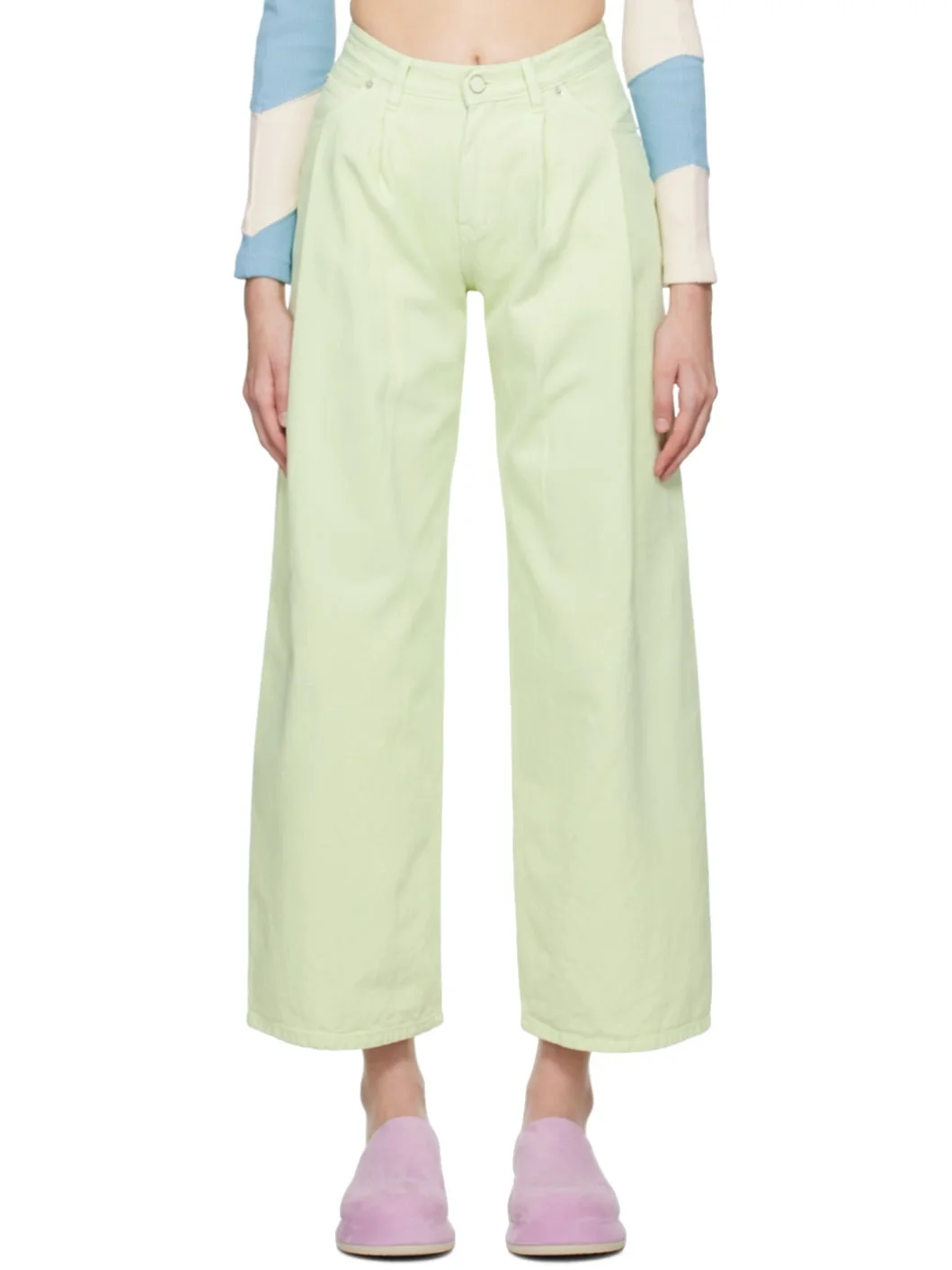 Cotton twill trousers. · Belt loops · Five-pocket styling · Zip-fly · Pleats at front Supplier color: Lime 100% cotton. Made in South Korea 231586F087001