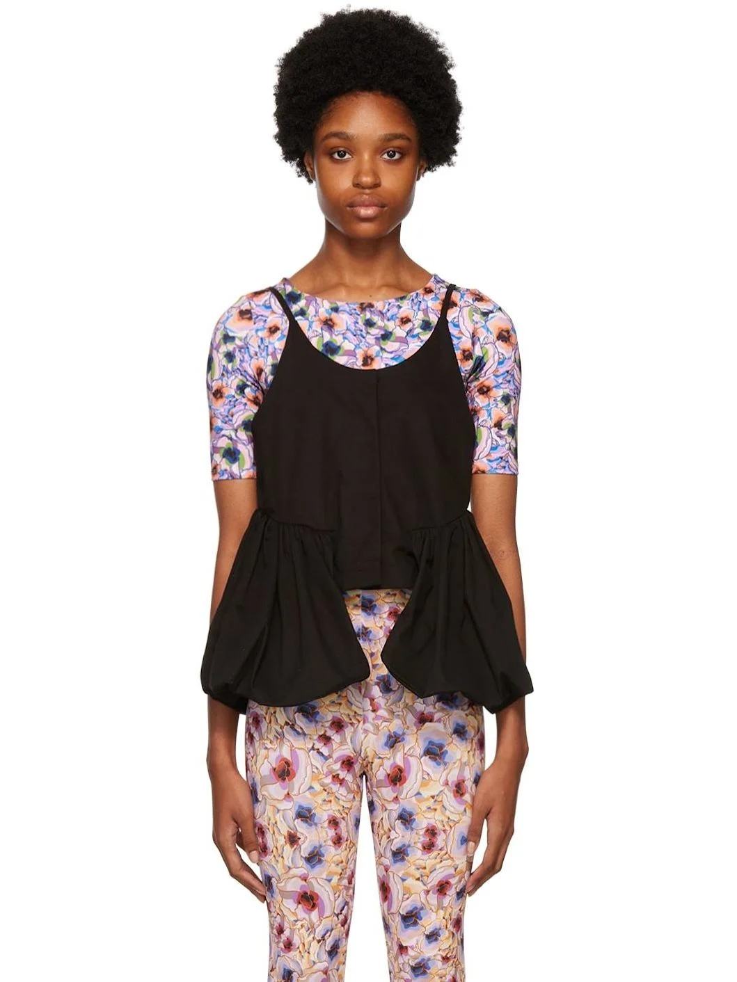 Stretch cotton twill camisole. · Plunging V-neck · Fixed spaghetti straps · Gathering at waist · Concealed press-stud closure at back Supplier color: Black 97% cotton, 3% elastane. Made in Colombia 222593F111000