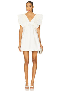 - 55% cotton 41% polyester 4% elastane - Dry clean only - Partially lined at bust - Hidden back zip closure - Front and back bow accents - Pleated shoulder strap detailing - Heavyweight poplin fabric - Revolve Style No. KVAR-WD2 - Manufacturer Style No. KVDFRANCI084