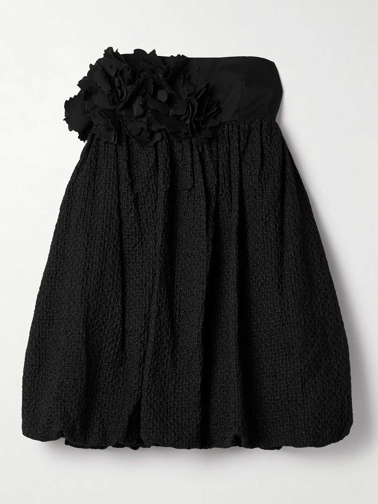 Kika Vargas' designs are manufactured locally in Colombia by a small, female-led team. Honoring the founder's "poetic" vision, this cotton 'Haidari' dress has 3D floral appliques along the strapless neckline and an embroidered bubble skirt. Accessorize with heels and a red lip Responsible Craftsmanship. This product promotes artisanal skill and brands that invest in communities and adhere to fair-trade principles. Find out more about our NET SUSTAIN criteria here.