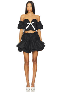 - 65% polyester 30% nylon 5% elastane - Made in Colombia - Dry clean Iron Dry - Unlined - Elastic waistband - Side seam pockets - Midweight crepe fabric - Skirt measures approx 12" in length - Revolve Style No. KVAR-WQ1 - Manufacturer Style No. KVSMAYE212