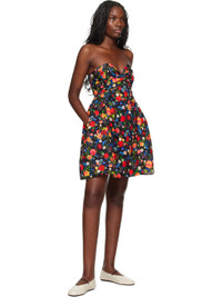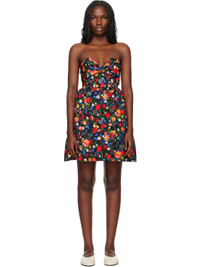 Polyester twill minidress. Printed floral pattern and boning throughout. · Knotted detailing at sweetheart neck · Gathering at chest and waist · Zip closure at back · Unlined Supplier color: Black garden 100% polyester. Made in Colombia 251593F052004