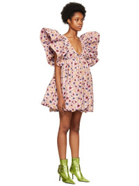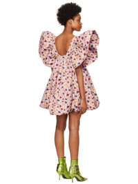Plain-woven polyester dress. Gathering and pattern printed throughout. · Scoop neck · Ballooned sleeves · Zip closure at back · Full satin lining Supplier color: Nude petunia 100% polyester. Made in Colombia 222593F052011