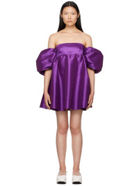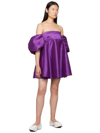 Stretch polyester- and nylon-blend taffeta dress. · Off-the-shoulder construction · Seam pockets · Puff sleeves · Zip closure at back · Partial twill lining Supplier color: Purple Body: 65% polyester, 30% nylon, 5% elastane. Lining: 97% polyester, 3% elastane. Made in Colombia 232593F052010
