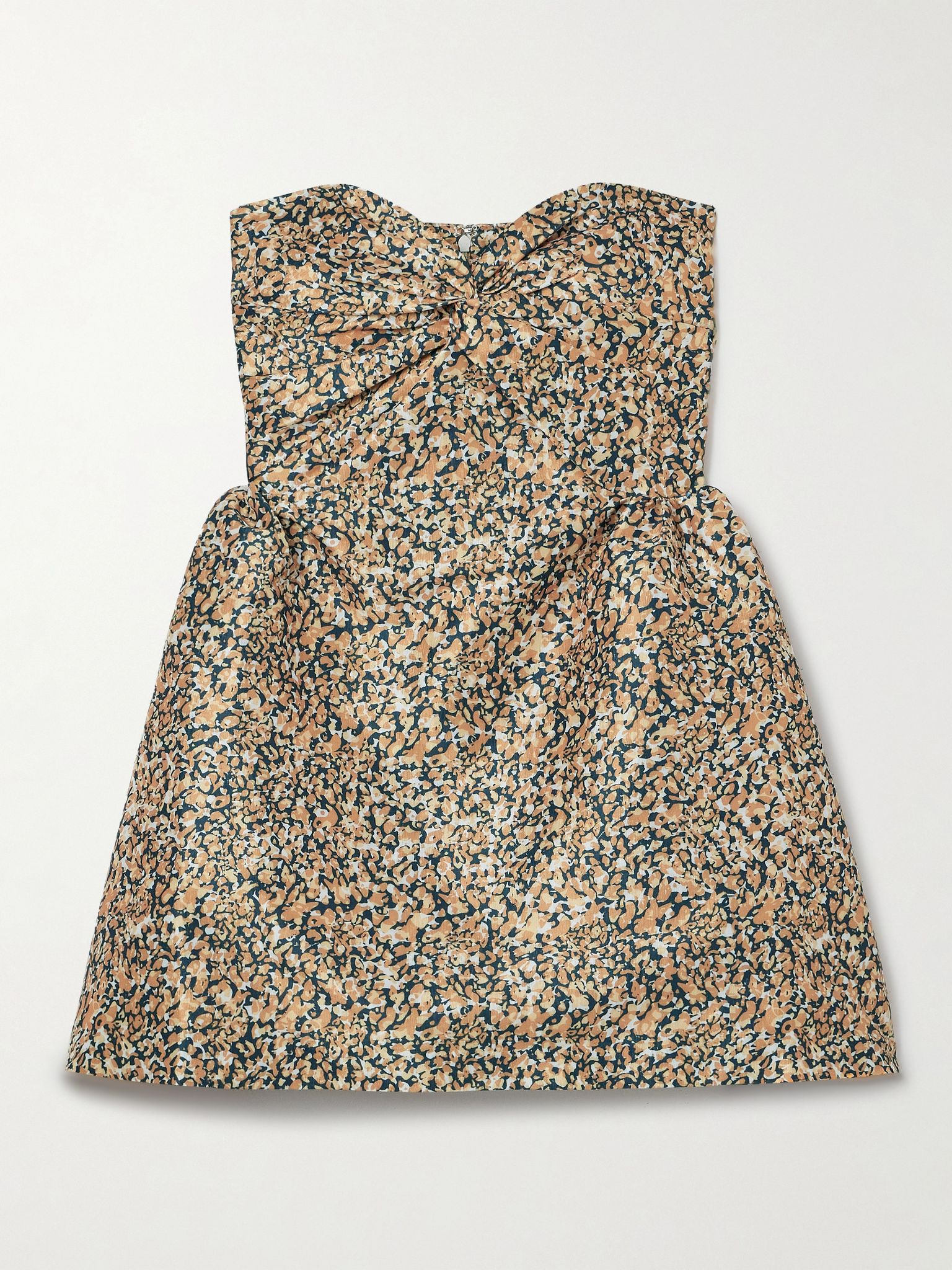 Kika Vargas' 'Rossy' dress is made from taffeta printed with leopard spots over a colorful botanical print. Fitted with supportive boning at the back, it has a strapless sweetheart neckline and fits close through the bodice before flaring out to a swishy mini hem. Wear yours with heels for an evening out. Size & Fit - Fits true to size, take your normal size - Intended to be fitted at the bust and waist, loose at the hip - Slightly short in length - Lightweight, non-stretchy fabric - Model is 175cm/ 5'9" and is wearing a US 2 Details & Care - Multicolored taffeta - Concealed hook and zip fastening at back - 65% polyester, 30% nylon, 5% elastane - Dry clean