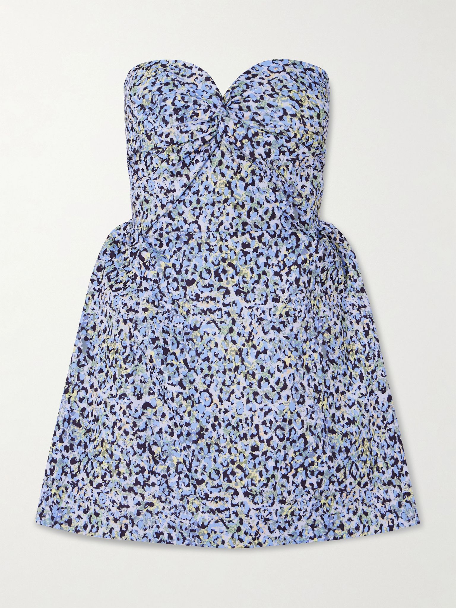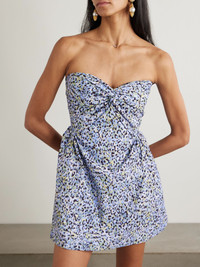 Kika Vargas' 'Rossy' dress is made from twill printed with leopard spots over a colorful botanical print. Fitted with supportive boning at the back, it has a strapless sweetheart neckline and fits close through the bodice before flaring out to a swishy mini hem. Wear yours with heels for an evening out. Large to size. See Size & Fit notes. Size & Fit - Fits large to size, take one size smaller than normal - Designed to be fitted at the bust and waist, loose at the hip - Mid-weight, non-stretchy fabric - Model is 175cm/ 5'9" and is wearing a US 0 Model measurements: - Bust: 81cm/ 32" - Waist: 62cm/ 24.5" - Hip: 89cm/ 35" Details & Care - Multicolored twill - Concealed hook and zip fastening at back - 100% polyester - Dry clean