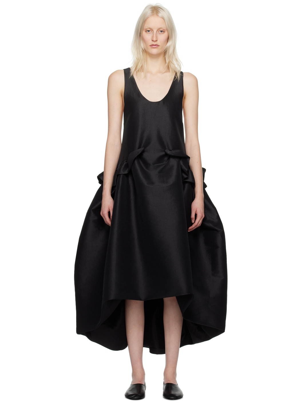 Stretch polyester- and nylon-blend taffeta dress. · Scoop neck · Ruffled trim and gathering at dropped waist · Droptail hem · Dropped armscyes · Low back · Full stretch satin lining Available exclusively at SSENSE. Supplier color: Black