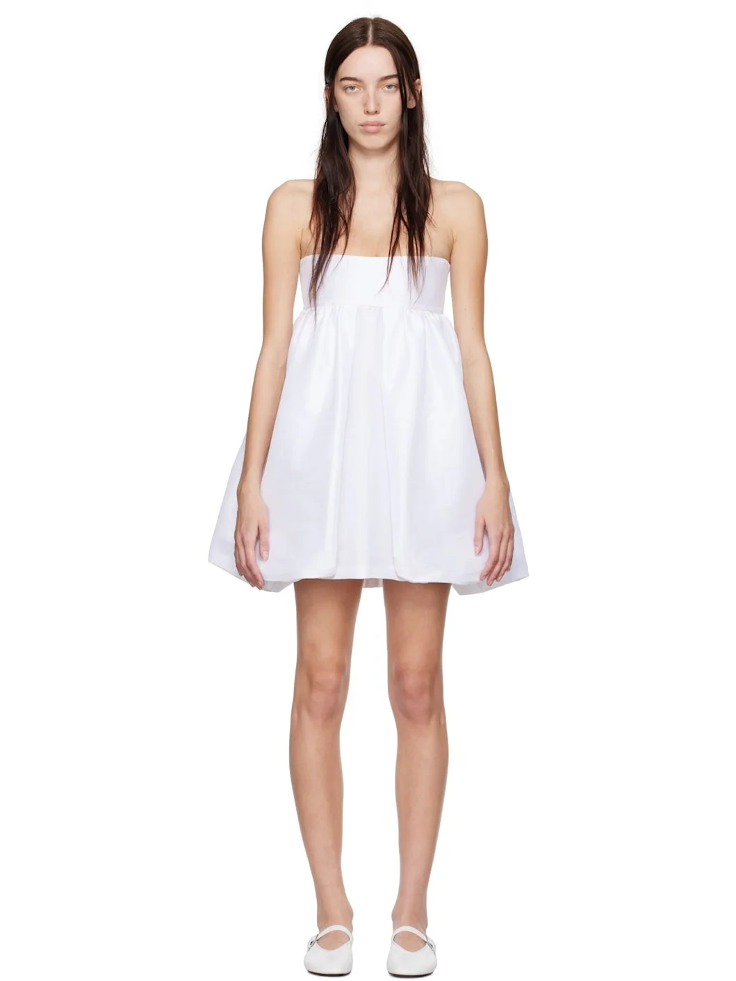 Stretch polyester- and nylon-blend taffeta minidress. · Layered construction · Straight neck · Gathering at chest · Bubble hem · Concealed zip closure at back · Full stretch satin lining Available exclusively at SSENSE. Supplier color: White Body: 65% polyester, 30% nylon, 5% elastane. Lining: 97% polyester, 3% elastane. Made in Colombia 251593F052007