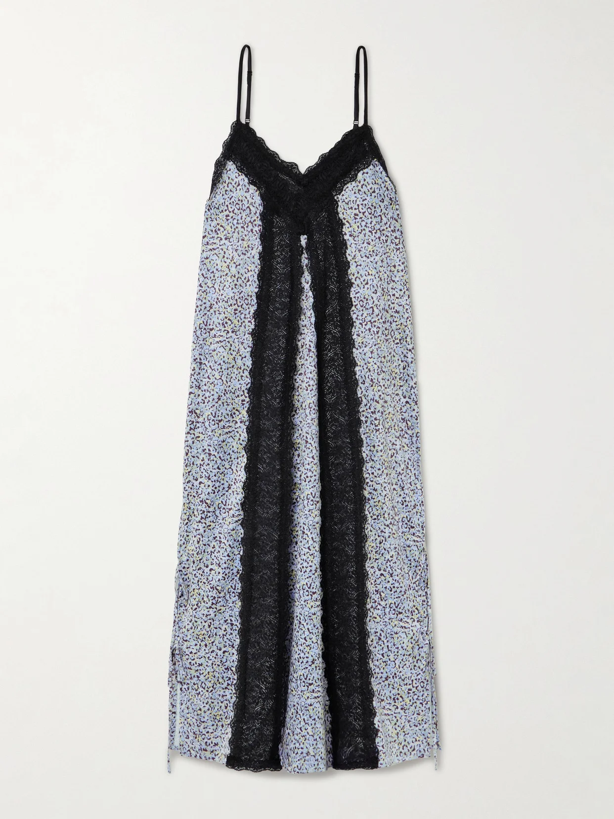 Kika Vargas' 'Sunita' maxi dress is trimmed with scalloped black lace that nods to classic lingerie. Made locally in the designer's native Colombia, it's cut from leopard-print stretch-satin in a fluid shape with adjustable spaghetti straps.