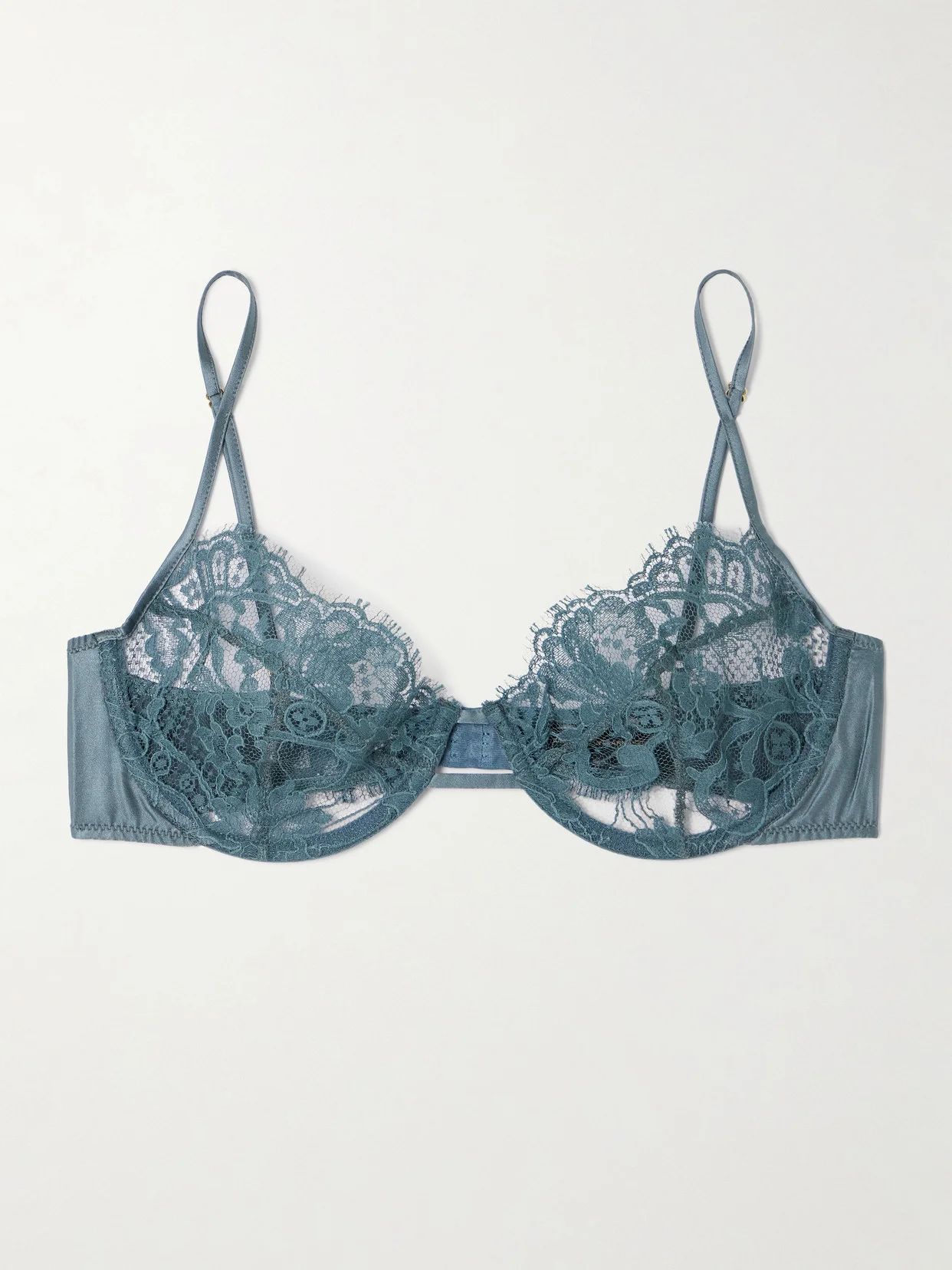 Camille Stretch-silk Satin-trimmed Organic Cotton-lace Underwired Balconette Bra