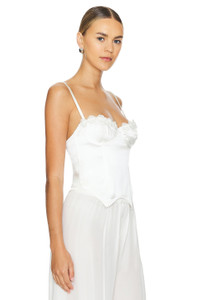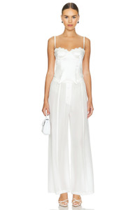 - Self 1: 90% silk 10% elastane Self 2: 100% nylon - Made in USA - Spot clean - Boned bodice - Back hook and eye closures - Adjustable shoulder straps - Revolve Style No. KIDE-WI127 - Manufacturer Style No. C001CR027