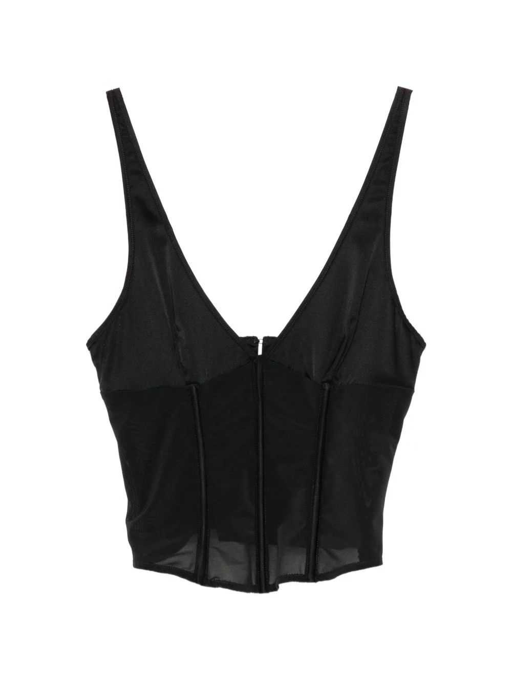 corset tank top Highlights - Black - Rear hook fastening - Panels - V-neck - Adjustable shoulder straps Imported Composition Silk 90%, Spandex/Elastane 10% Washing instructions Dry Clean Only