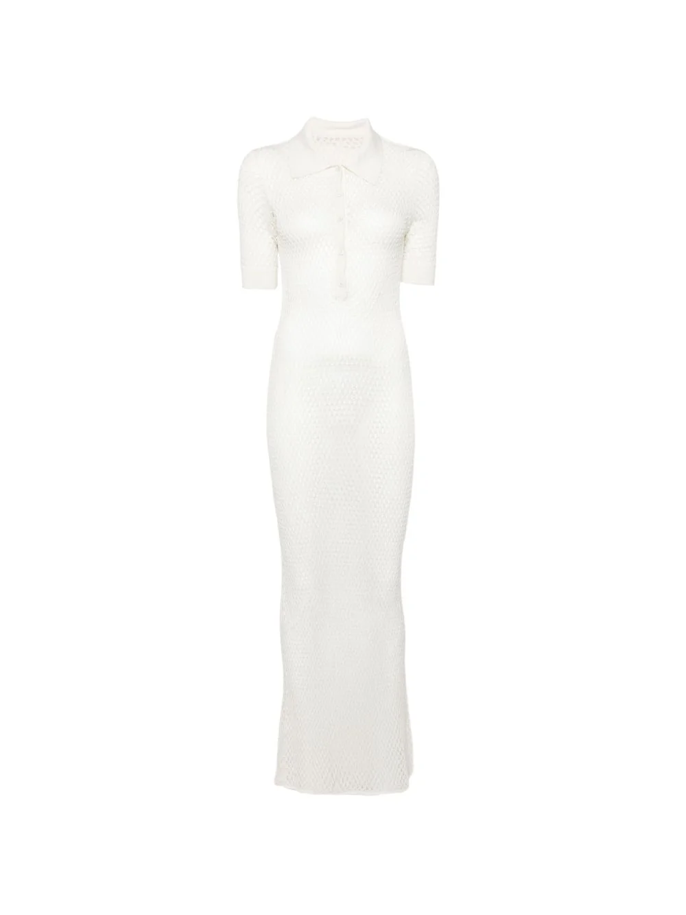 crochet polo dress Highlights - Ivory white - Front button fastening - Polo collar - Short sleeves Made in Italy Composition Polyamide 75%, Elastane 25% Washing instructions Hand Wash