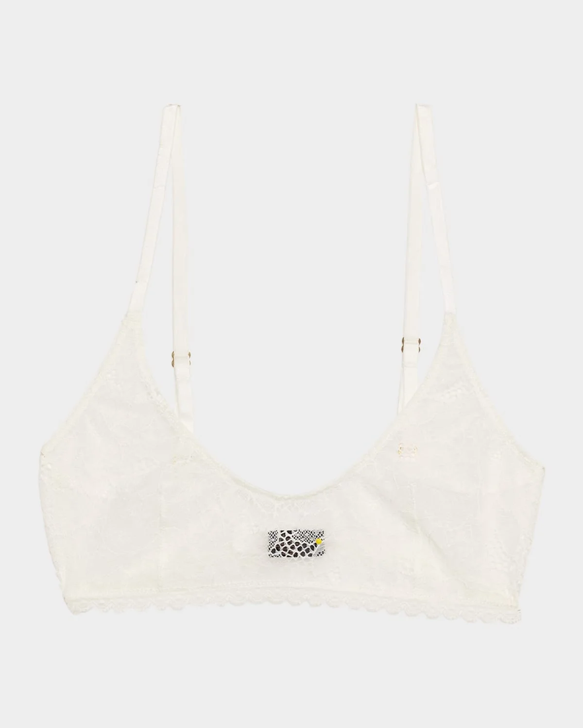 Kiki De Montparnasse "Dahlia" soft bra in floral French lace Scoop neckline Wireless cups Adjustable shoulder straps Vertical darts for added shape Hook-and-eye back closure Nylon/polyamide/elastane Imported