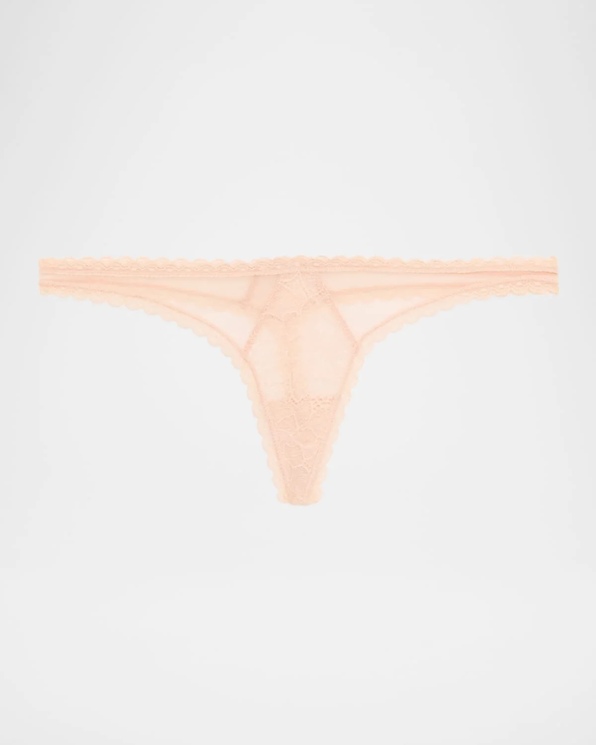 Kiki De Montparnasse "Dahlia" French lace thong finished with scalloped edges Lowrise sits low on the hips Minimal seat coverage Cottonlined gusset Nylon/polyamide/elastane Dry clean Imported