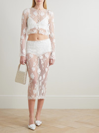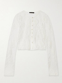 Kiki de Montparnasse's 'Dominique' top is made from sheer cotton-blend lace, reminiscent of the brand's signature lingerie. It's designed for a cropped fit and fastens with faux pearls through the silk placket. Underpin yours with a white bralette.