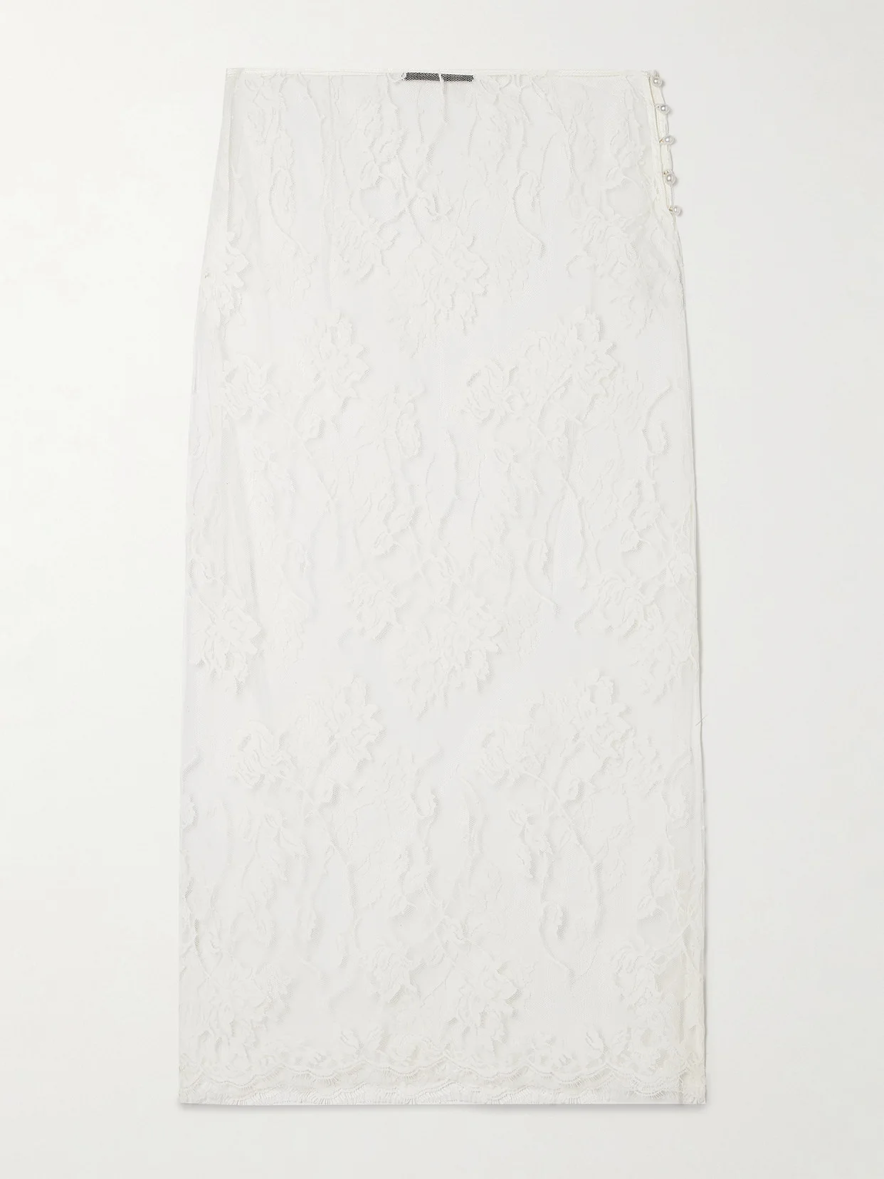 Dominique Faux Pearl-embellished Cotton-blend Lace Midi Skirt