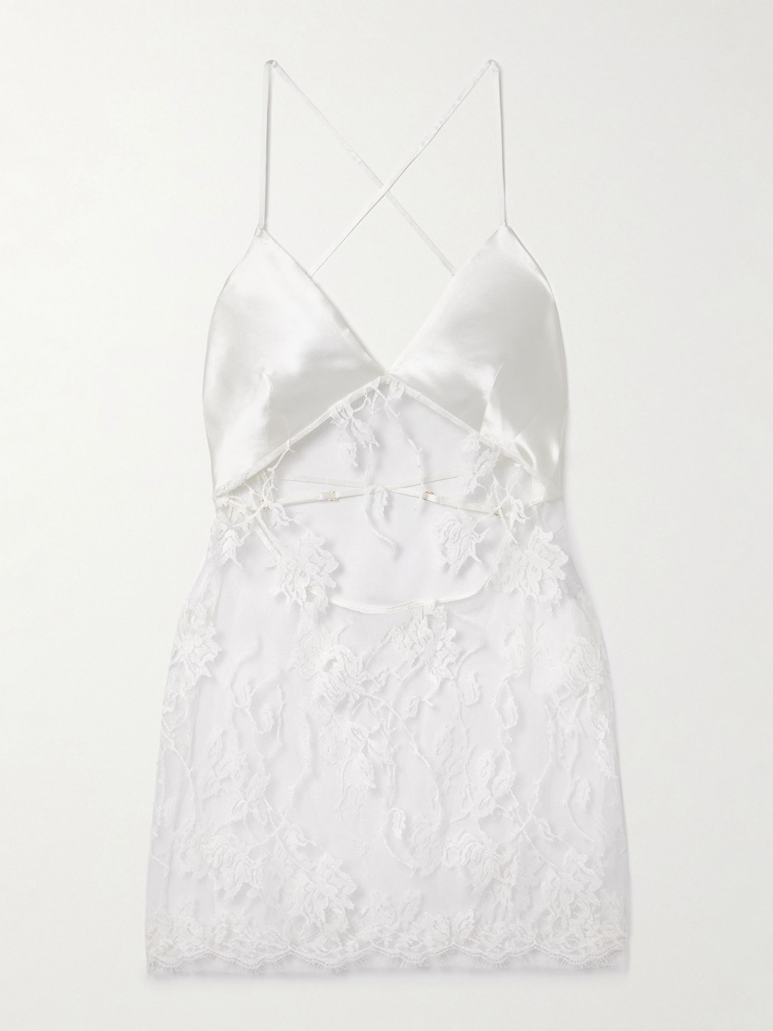 Dominique silk-trimmed cotton-blend Leavers lace chemise Ivory