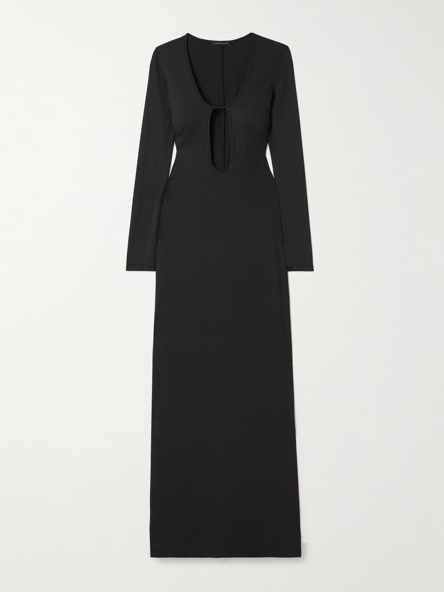 Kiki de Montparnasse's 'Echauffe' gown is designed with the same elegant allure as the brand's lingerie. Made from slinky stretch-jersey, it has a figure-hugging fit and bold, circular cutout at the bust that reveals a peek of skin. Size & Fit - Fits true to size, take your normal size - Designed for a close fit - Lightweight, stretchy fabric - Model is 177cm/ 5'10" and is wearing a size XSmall Details & Care - Black stretch-jersey - Slips on - 80% nylon, 20% elastane - Hand wash