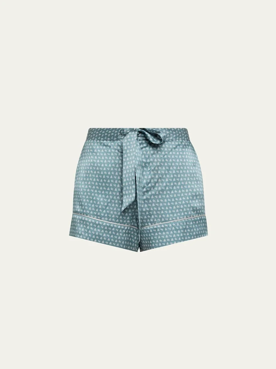 Kiki De Montparnasse "Kiki" lounge shorts crafted from silk charmeuse with contrast piping High-rise sits on the hips Drawstring waistband Flat front Side seam pockets Straight-leg fit Pull-on style Silk Imported Model is 5'10"/177cm. Online Inquiries: BGS21_I2CWV| Store Inquiries: #4408939