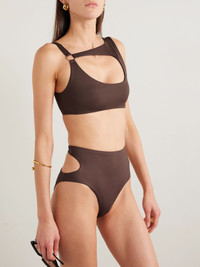 Kiki de Montparnasse's 'La Sirene' bikini briefs have been made in Italy from comfortable stretch fabric and have a high rise with chic cutouts. Complete the set with the matching top. Size & Fit - Fits true to size, take your normal size - High-cut style with medium brief coverage - Model is 177cm/ 5'10" and is wearing a size XSmall Model measurements: - Bust: 79cm/ 31" - Waist: 66cm/ 26" - Hip: 89cm/ 35" Details & Care - Chocolate stretch-polyamide - Pull on - 75% polyamide, 25% elastane - Hand wash - Lotion, sunscreen, oil and chlorine can cause discoloration of this item; this is not a manufacturing defect. Please follow care instructions to keep your swimwear in the best condition