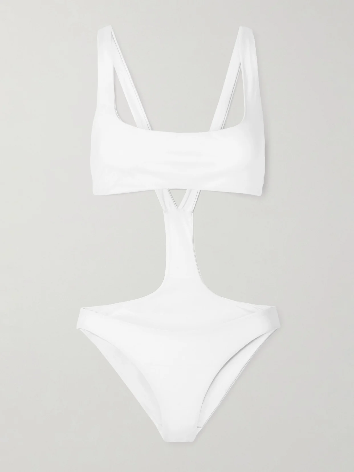 Kiki de Montparnasse's 'La Sirene' swimsuit is designed is cleverly cutout to resemble a bikini from the front and one-piece from the back. It's cut from Italian stretch fabric that's double-lined for a smooth, sculpting effect.