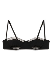lace inset balconette bikini top Highlights - Black - Rear hook fastening - Adjustable shoulder straps - Stretch-jersey Made in Italy Composition Elastane 50%, Polyamide 50% Washing instructions Dry Clean Only