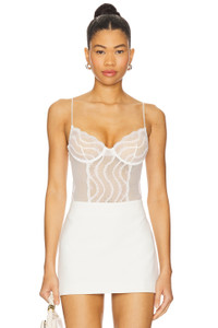 - Self: 82% nylon 18% elastane Contrast Fabric: 100% cotton - Dry clean only - Unpadded underwire cups - Hidden back zipper closure and snap gusset - Adjustable shoulder straps - Mesh fabric - Revolve Style No. KIDE-WI140 - Manufacturer Style No. C001BD001