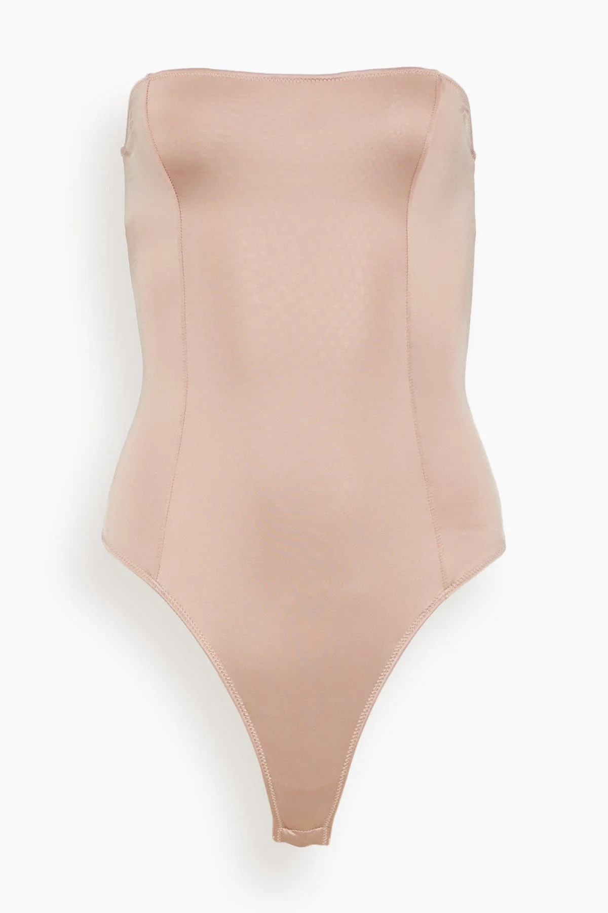 The Kiki De Montparnasse Liquid Contour Bodysuit creates a beautiful silhouette. This strapless bodysuit is crafted in Austrian satin-faced viscose jersey with a fitted silhouette and defined waistband. FIT DETAILS - Bodysuit - Strapless - Defined waist - 93% Viscose, 7% Lycra