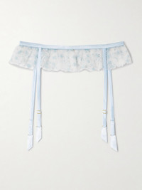 Mathilde Silk-blend Satin-trimmed Embroidered Tulle Suspender Belt